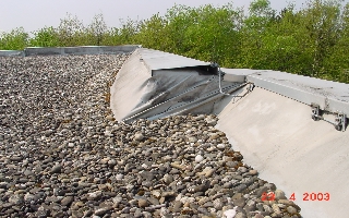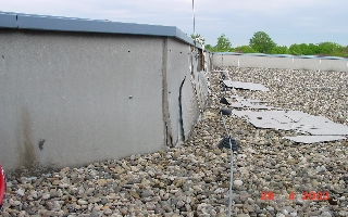 den Eckbereichen an der Attika ist die Folie bereits gerissen.